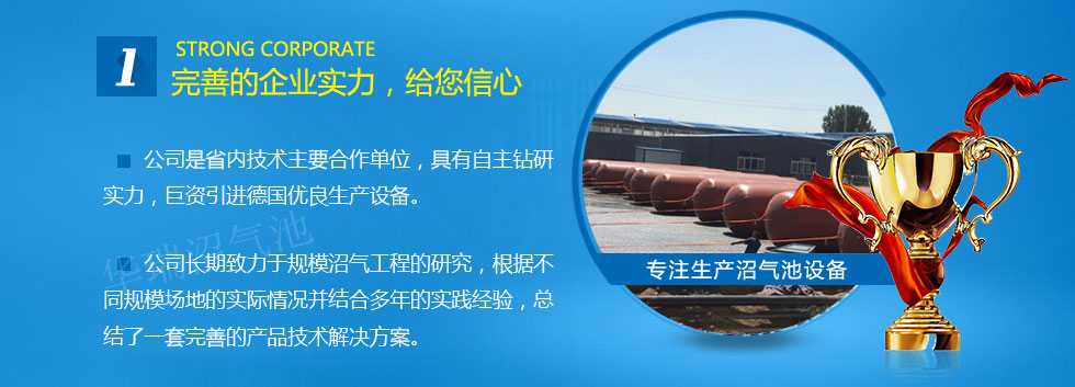 雄厚的技術力量和二十多年的生產經驗,增加養殖場沼氣池產品的新穎性和吸引力,增強使用效果,公司全體同仁將不懈的努力,不斷地追求卓越的質量、創特色的品牌及完美的企業形象。公司是一家集紅泥沼氣池設計施工監理為一體的大型著名企業,誠信至先,服務至上,品質至美是我們不懈的追求,讓廣大